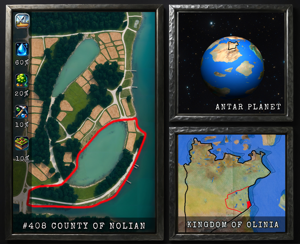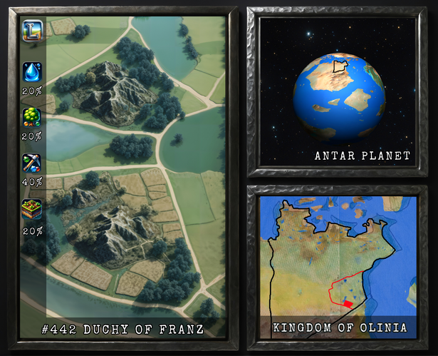 Each season, Antár Universe will introduce a new Grand Duchy as part of a larger kingdom. The first kingdom, Loudorn, will have 3 Grand Duchies. Each Grand Duchy includes about 10 Duchies, 40 Counties, and 300 Baronies, totaling 350 to 400 Lands.